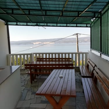 Our house is located in the beautiful area of Ruskamen, close to the beach and surrounded by nature. Situated above the main road in a really peaceful neighborhood, it offers a peaceful retreat. Approximately 150 meters below the house, there is a beautiful pebble beach, easily accessible via a local road. The town center is only 100 meters away, while a café bar, markets, and restaurants are approximately 80 meters from the house
